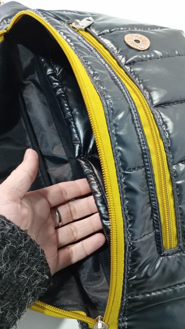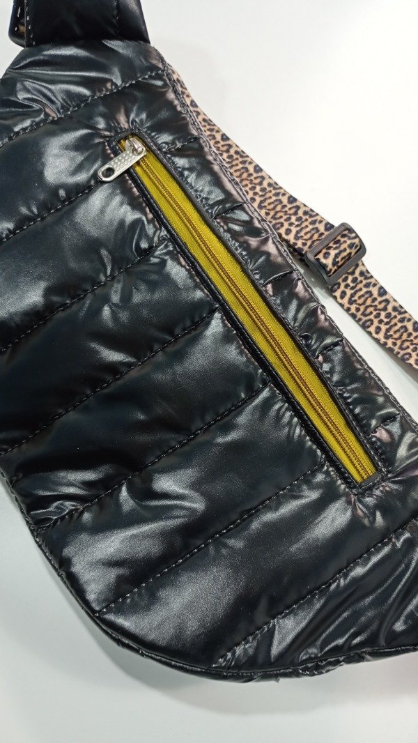 Confeccionada en matelasse, tela interior impermeable. Cinta sublimada de 40 mm.