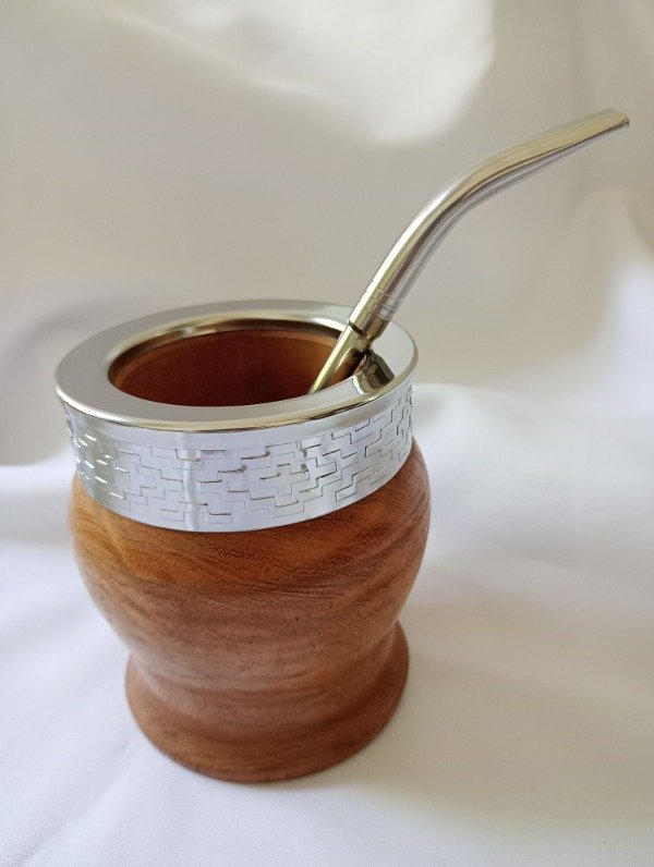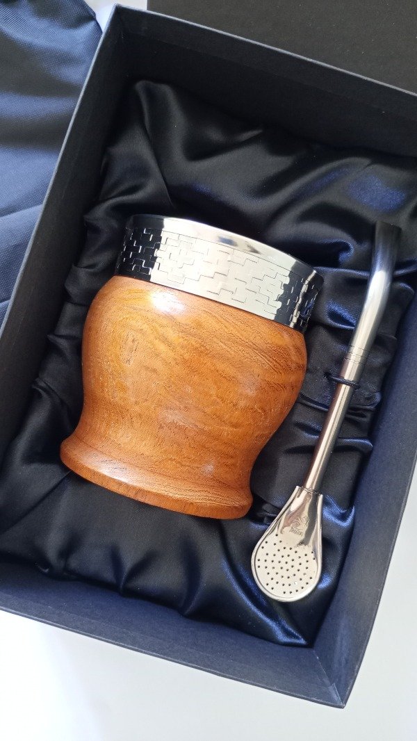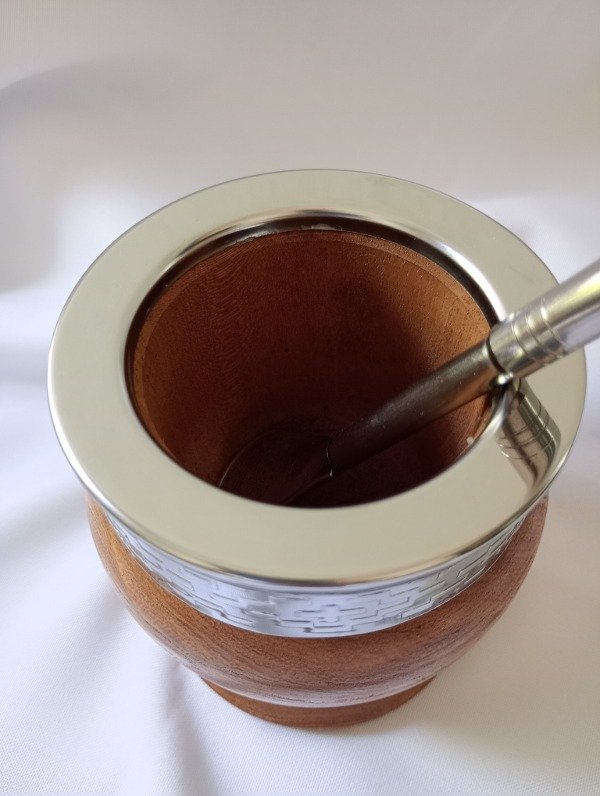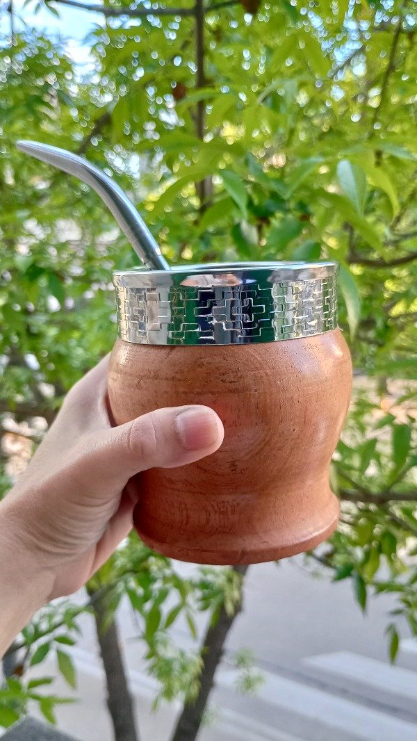✅Mate imperial PREMIUM , algarrobo seleccionado, fleje y virola de acero inoxidable. Base ancha, boca ancha